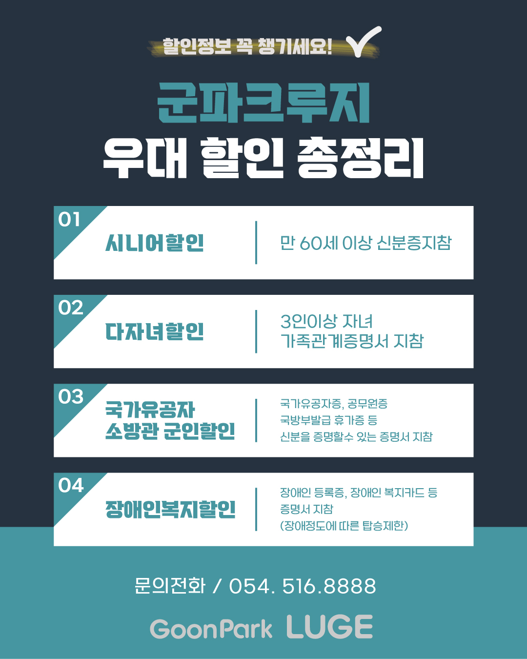 청도 군파크루지에서 알려드리는 시원한 우대할인 사항을 알려드릴께요 !